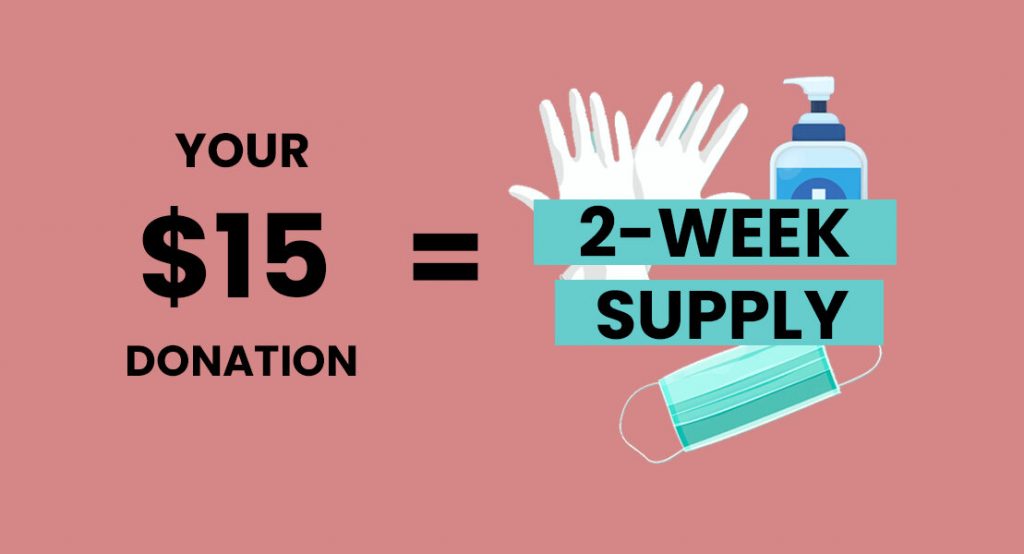 We will package and provide 10 surgical masks, 10 pairs of gloves and while supplies last, 2 small bottles of hand sanitizer. We have a two week goal as it generally takes 14 days for the virus to incubate and be treated before next steps have to be made. A two week care package will help prevent spread within the family.